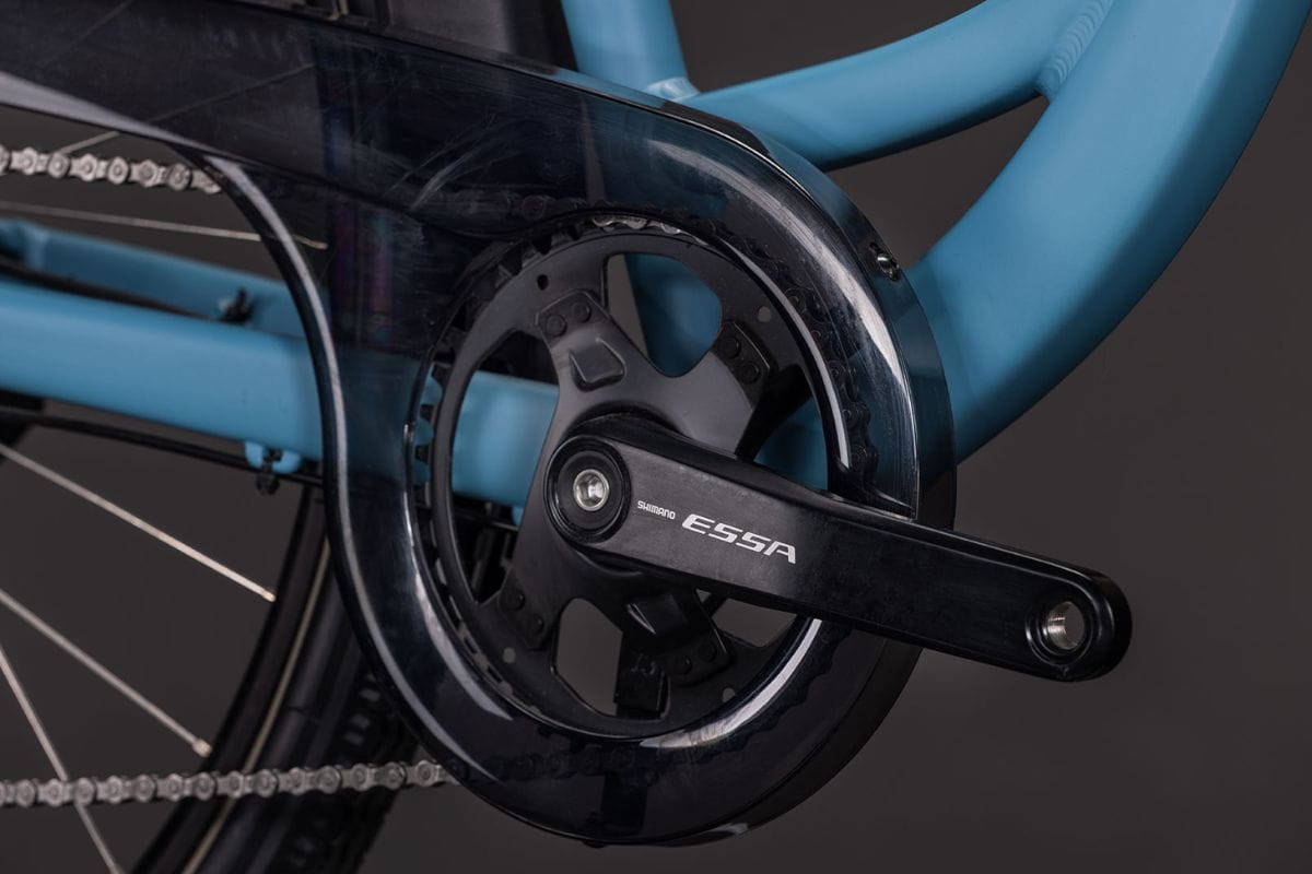 Za płynną zmianę biegów odpowiada intuicyjny napęd Shimano Essa 1x8, a bezpieczeństwo w każdych warunkach gwarantują hydrauliczne hamulce tarczowe Shimano. Rower jest w pełni gotowy do drogi – posiada amortyzowany widelec SR Suntour, system oświetlenia zasilany dynamem, pełne błotniki oraz funkcjonalny bagażnik SIC 2.0. To wszechstronny towarzysz, który sprawia, że każda trasa staje się czystą przyjemnością.